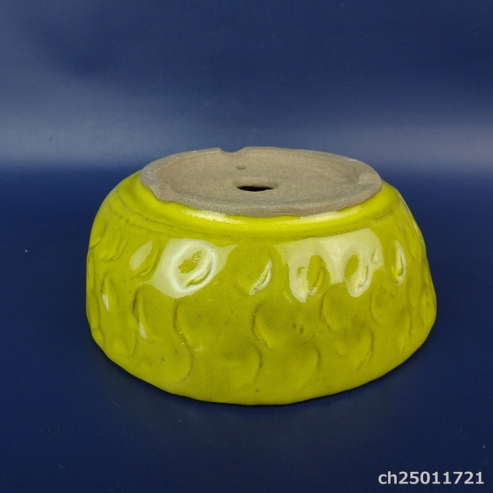 盆栽鉢 落款なし 小型 長辺 約13.1cm 丸鉢 釉薬 新品 t1198406235