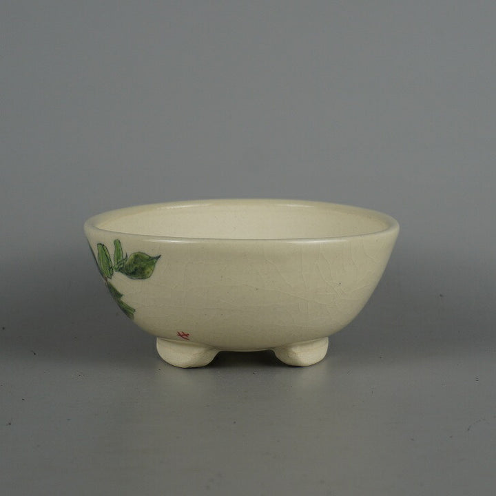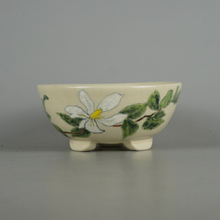 盆栽鉢 蝉山 小型 長辺 約 13cm 丸鉢 色絵 花 はな ハナ 植物 観賞用 新品 h1198421946