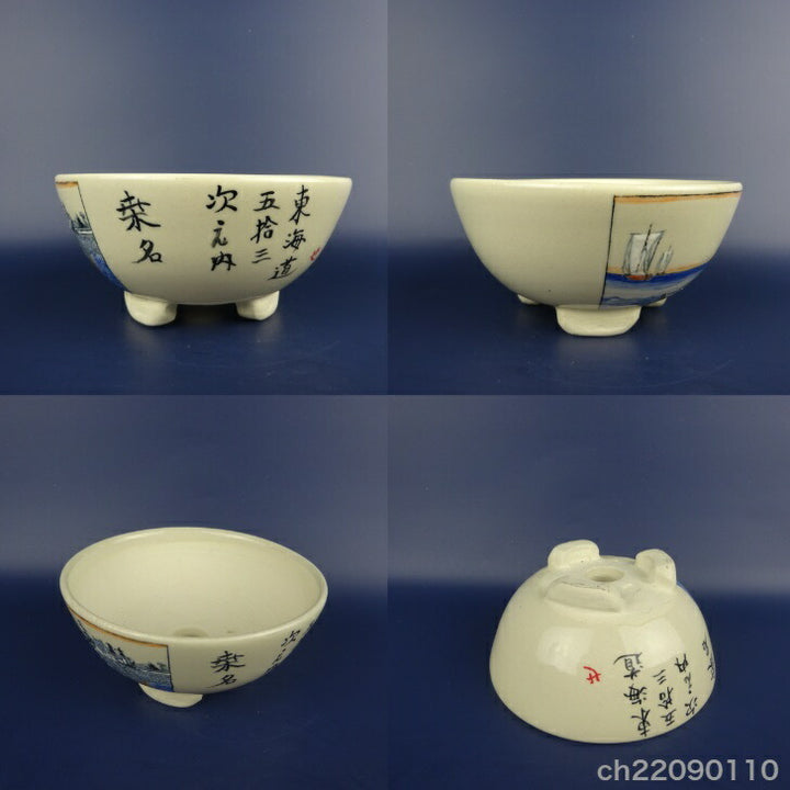 盆栽鉢 蝉山 小型 長辺 約13cm 丸鉢 色絵 風景 観賞用 新品 n1198408990