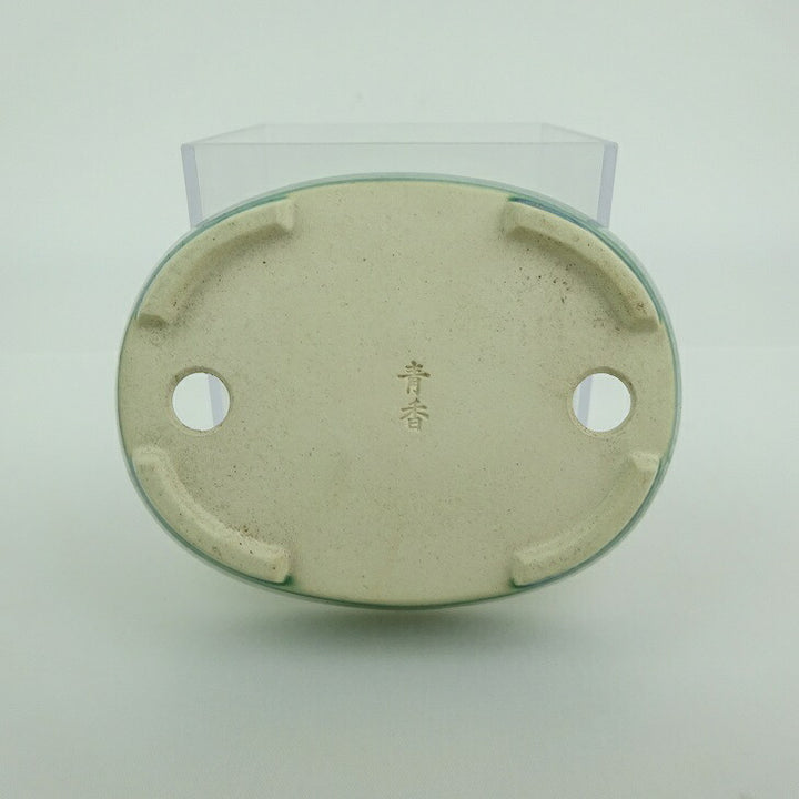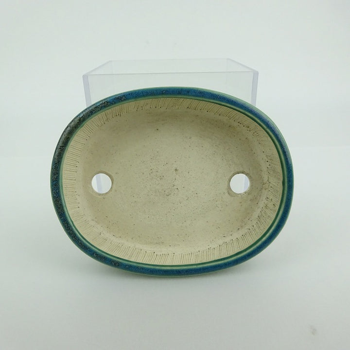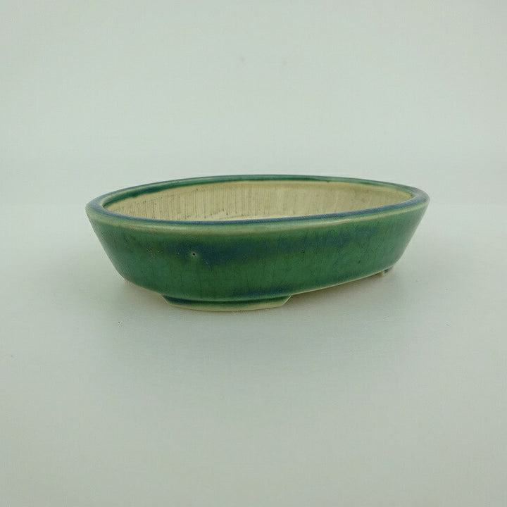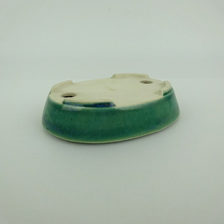 盆栽鉢 青香 小型 長辺 約10.1cm 楕円鉢 釉薬 u1198431850