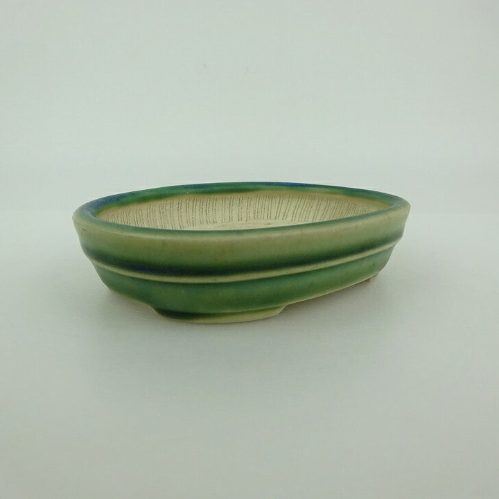 盆栽鉢 青香 小型 長辺 約10cm 楕円鉢 中帯 釉薬 l1198415204