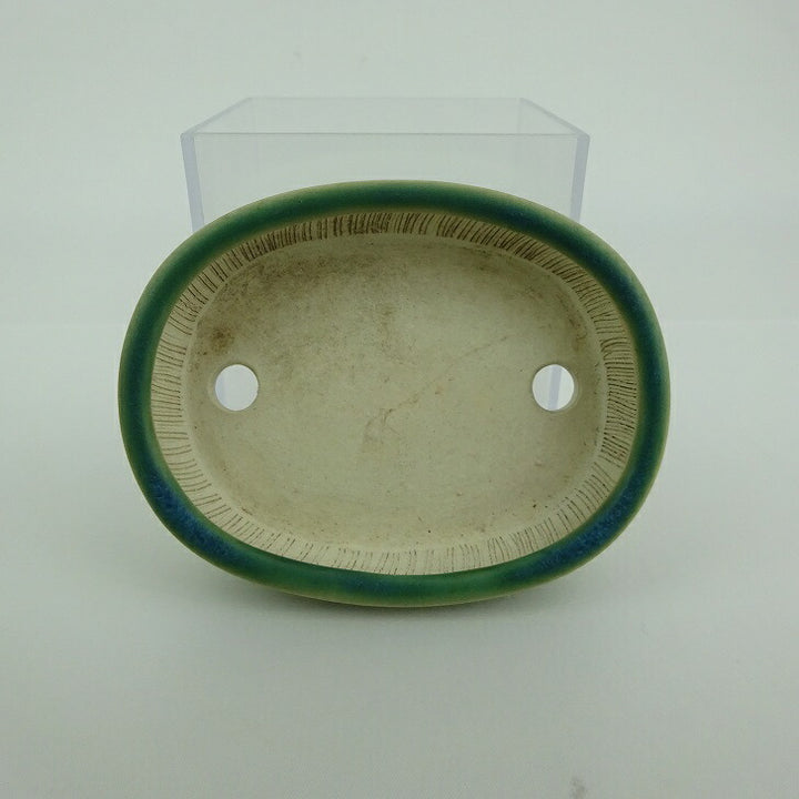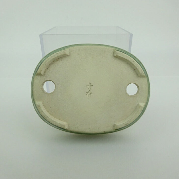 盆栽鉢 青香 小型 長辺 約 10cm 楕円 鉢 中帯 釉薬 現品 品名青香...
