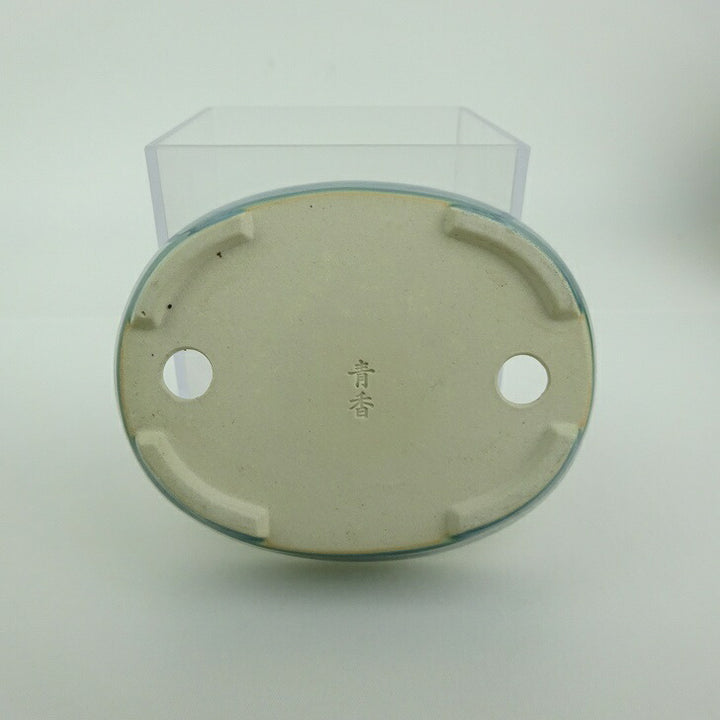 盆栽鉢 青香 小型 長辺 約10cm 楕円鉢 釉薬 c1198403397