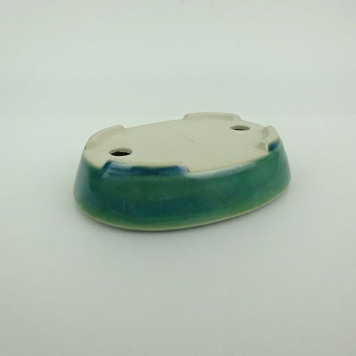 盆栽鉢 青香 小型 長辺 約10cm 楕円鉢 釉薬 e1198408794