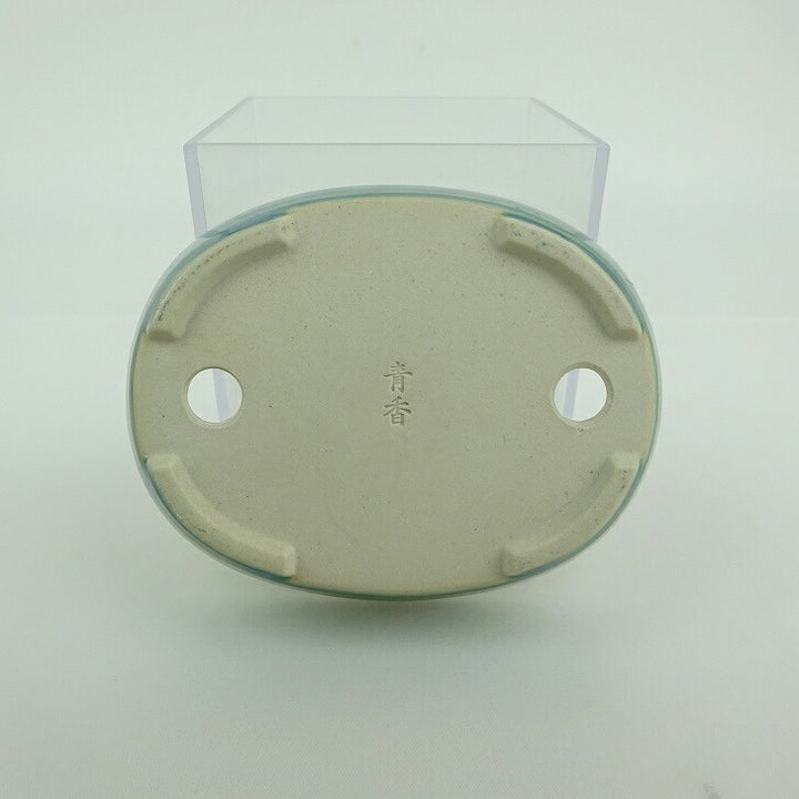 盆栽鉢 青香 小型 長辺 約 10cm 楕円 鉢 釉薬 現品 品名青香...