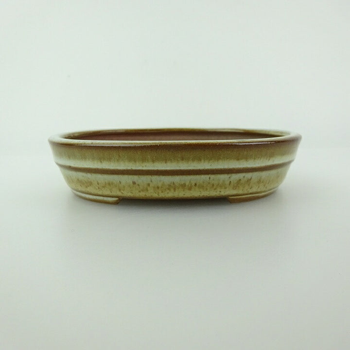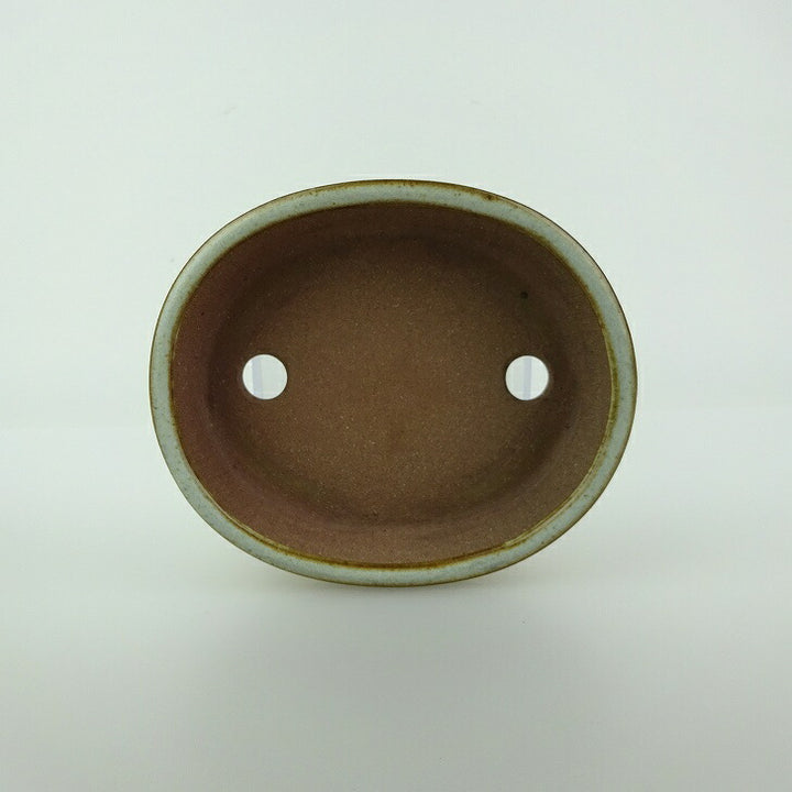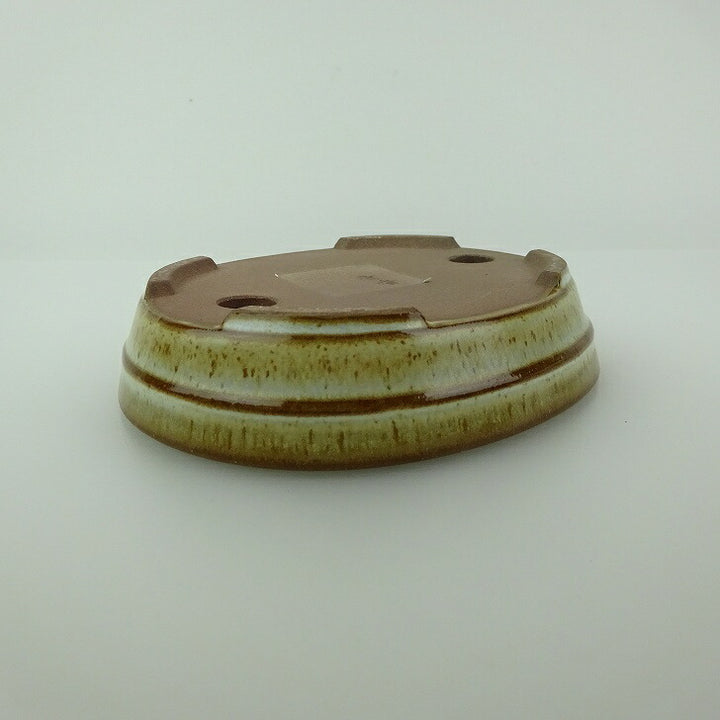 盆栽鉢 青香 小型 長辺 約 11.9cm 楕円 鉢 中帯 釉薬 現品 品名青香...