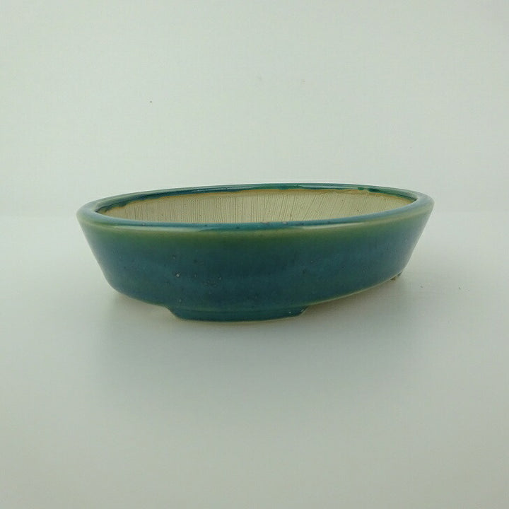 盆栽鉢 青香 小型 長辺 約11.9cm 楕円鉢 釉薬 1200263543