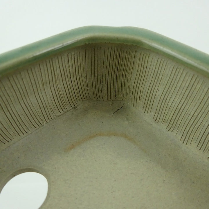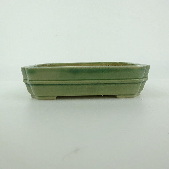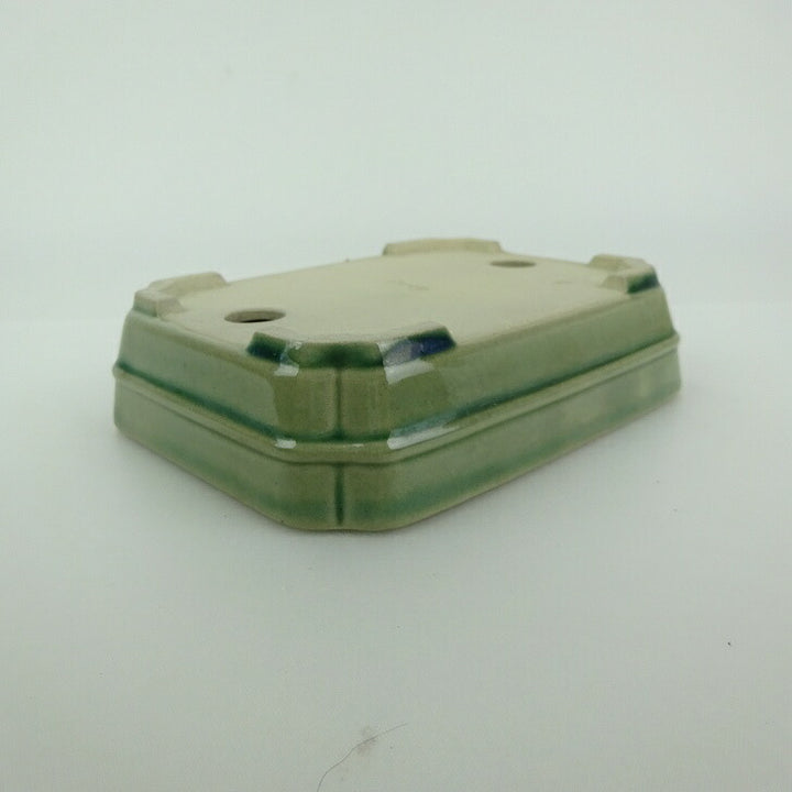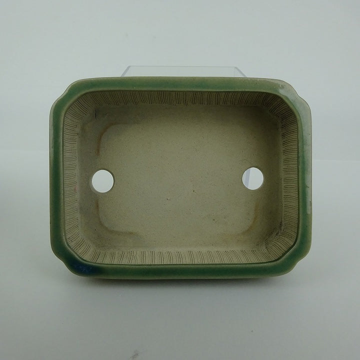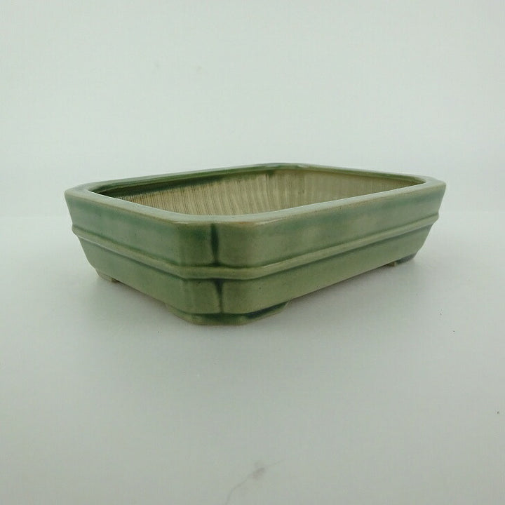 盆栽鉢 青香 小型 長辺 約12cm 長方鉢 隅入 中帯 釉薬 m1198406485