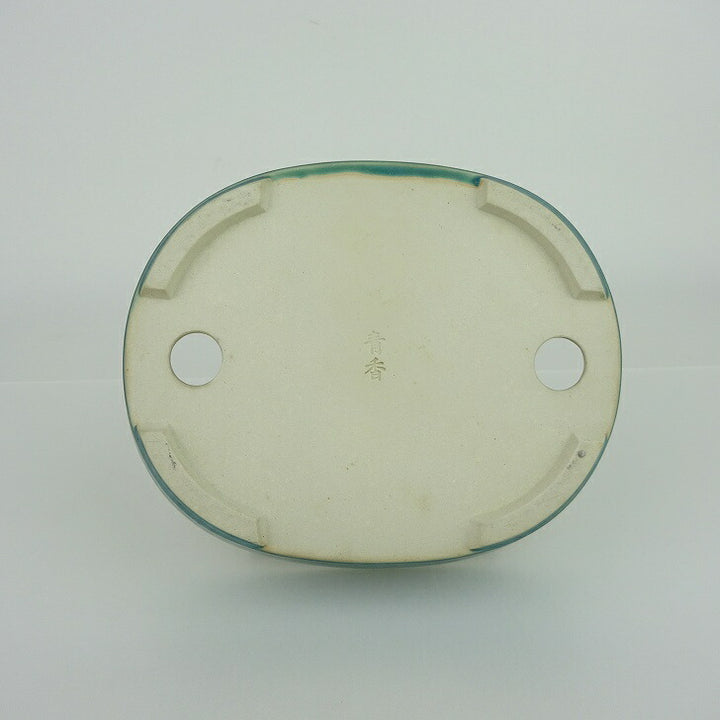 盆栽鉢 青香 小型 長辺 約 14.5cm 楕円鉢 釉薬 現品 品名青香...