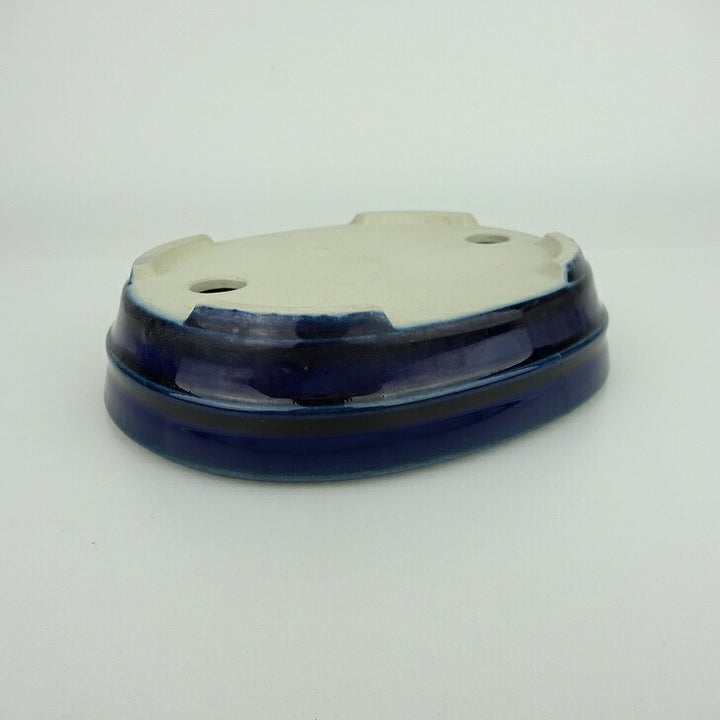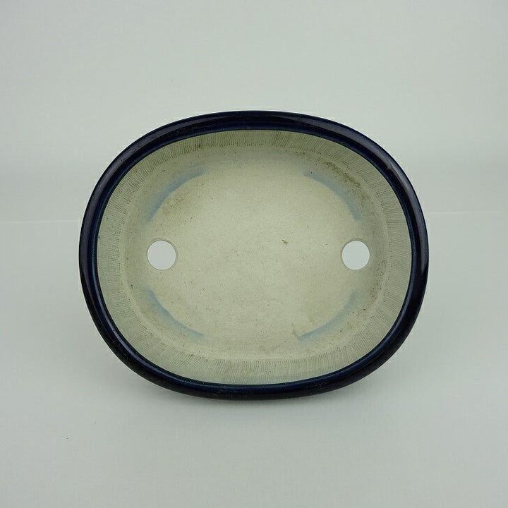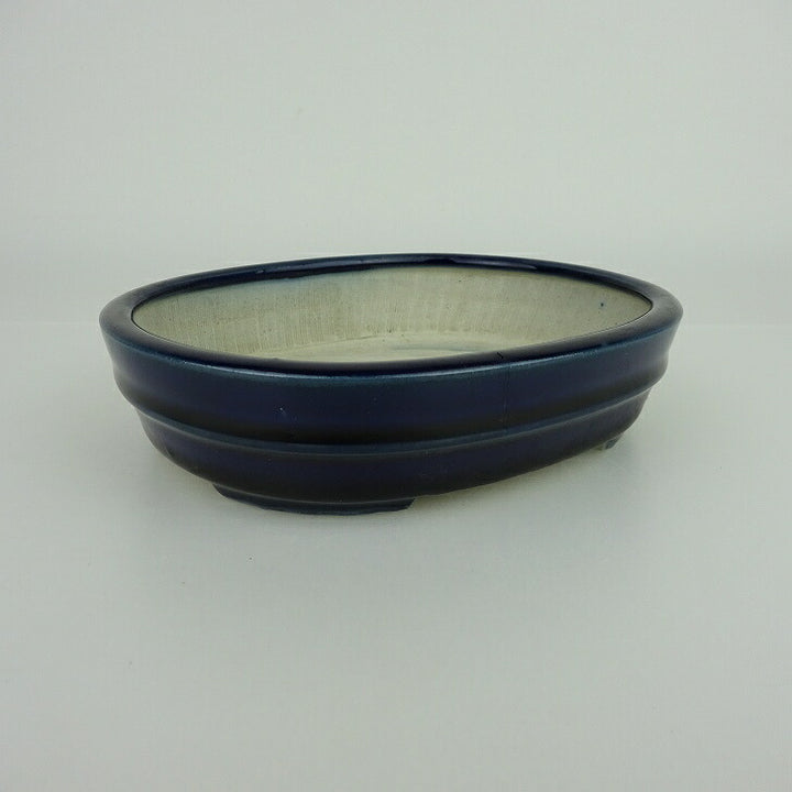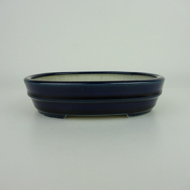 盆栽鉢 青香 小型 長辺 約14.8cm 楕円鉢 中帯 釉薬 k1198413512