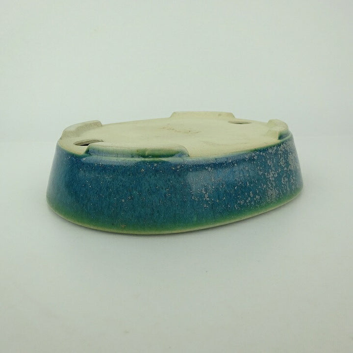 盆栽鉢 青香 小型 長辺 約14.8cm 楕円鉢 釉薬 h1198426713