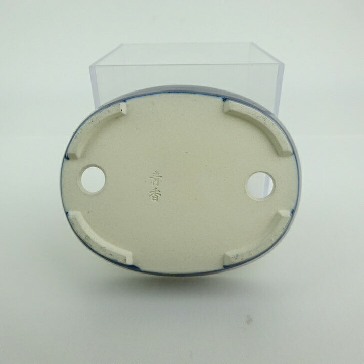 盆栽鉢 青香 小型 長辺 約9.8cm 楕円鉢 釉薬 n1198406497