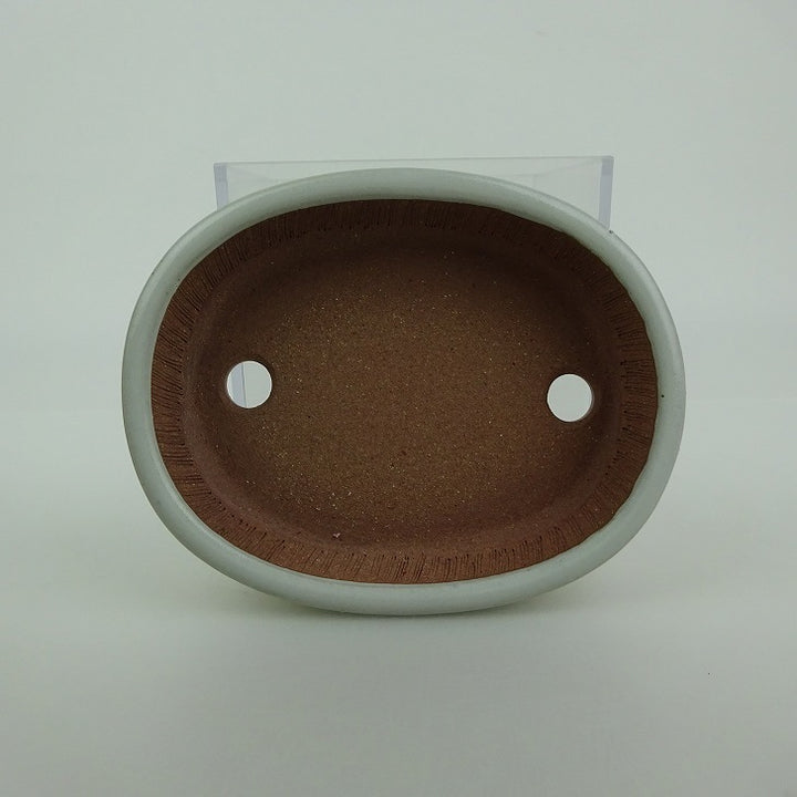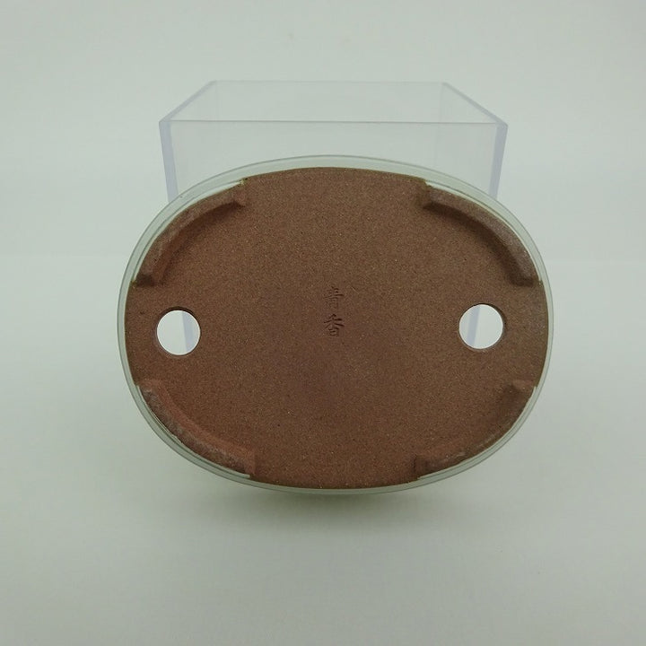 盆栽鉢 青香 小型 長辺 約9.9cm 楕円鉢 中帯 釉薬 x1198411083