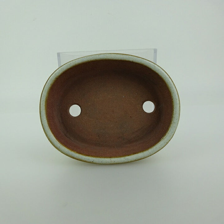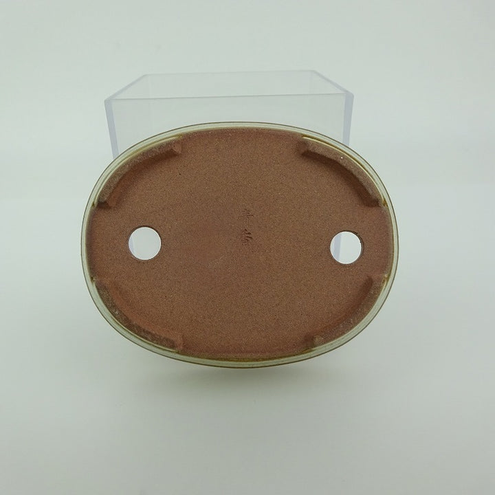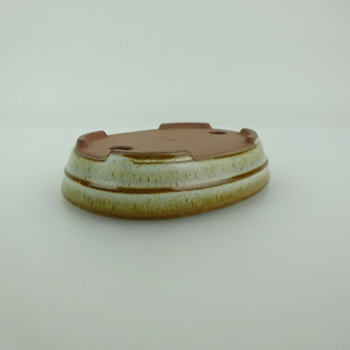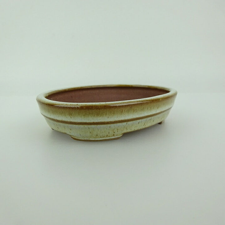盆栽鉢 青香 小鉢 長辺 約10cm 楕円鉢 中帯 釉薬 新品 数量物 j1198413178