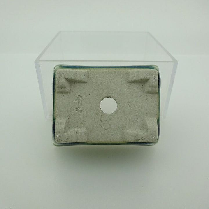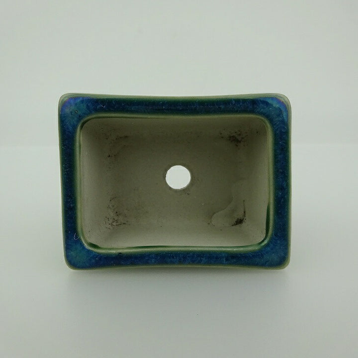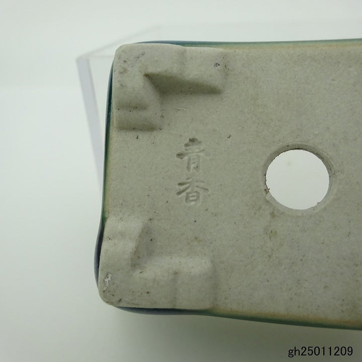 盆栽鉢 青香 小鉢 長辺 約 5.8cm 長方 鉢 縁付 釉薬 現品 品名青香...