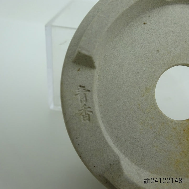 盆栽鉢 青香 小鉢 長辺 約 5.9cm 丸 鉢 上下帯 釉薬 現品 品名青香...