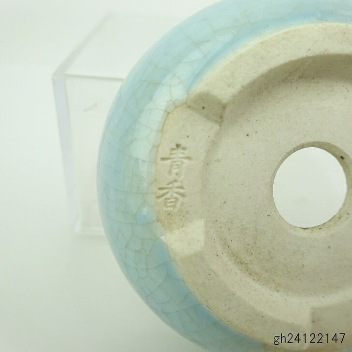 盆栽鉢 青香 小鉢 長辺 約 6.1cm 丸 鉢 貫入 釉薬 現品 品名青香...