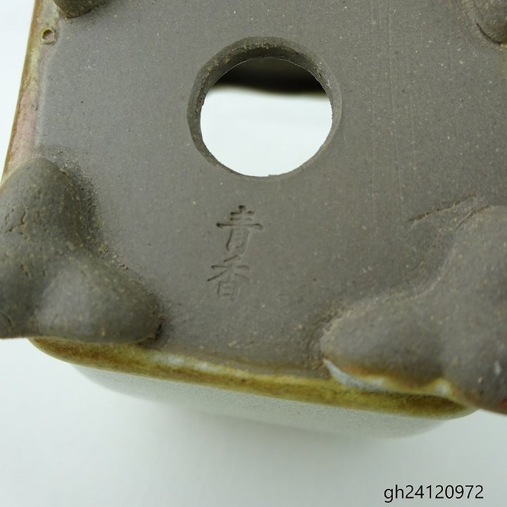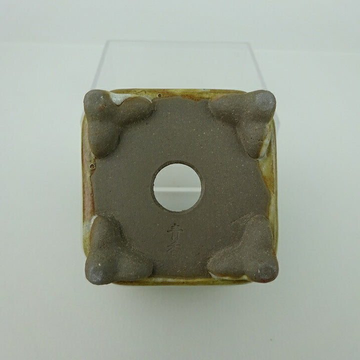 盆栽鉢 青香 小鉢 長辺 約 6.5cm 正方 鉢 隅入 雲足 下帯 釉薬 現品 品名青香...