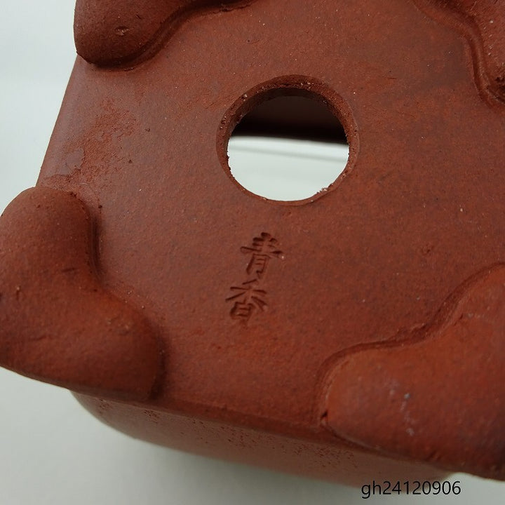 盆栽鉢 青香 小鉢 長辺 約 6.8cm 正方鉢 隅入 雲足 下帯 泥物 現品 品名青香...
