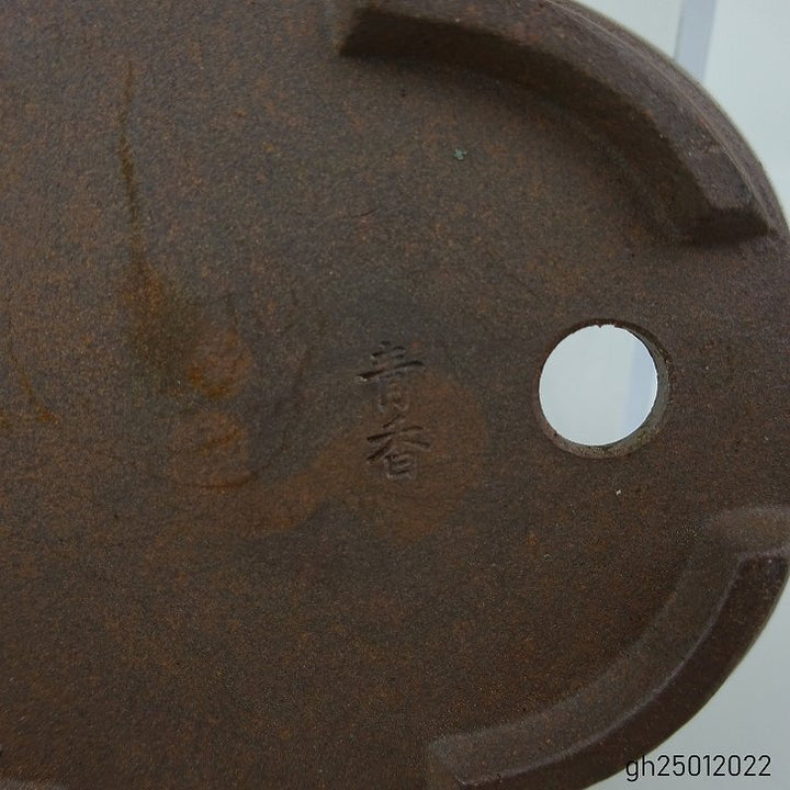 盆栽鉢 青香 小鉢 長辺 約 8.2cm 楕円 鉢 泥物 現品 品名青香...