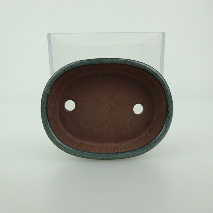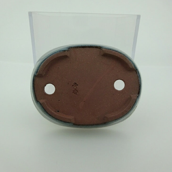 盆栽鉢 青香 小鉢 長辺 約8.2cm 楕円鉢 釉薬 1198403840