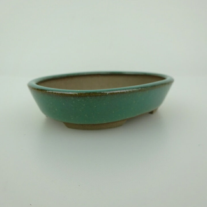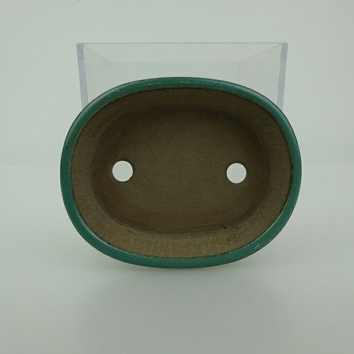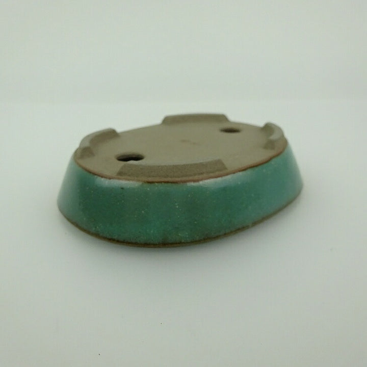盆栽鉢 青香 小鉢 長辺 約8.3cm 楕円鉢 釉薬 f1198410681