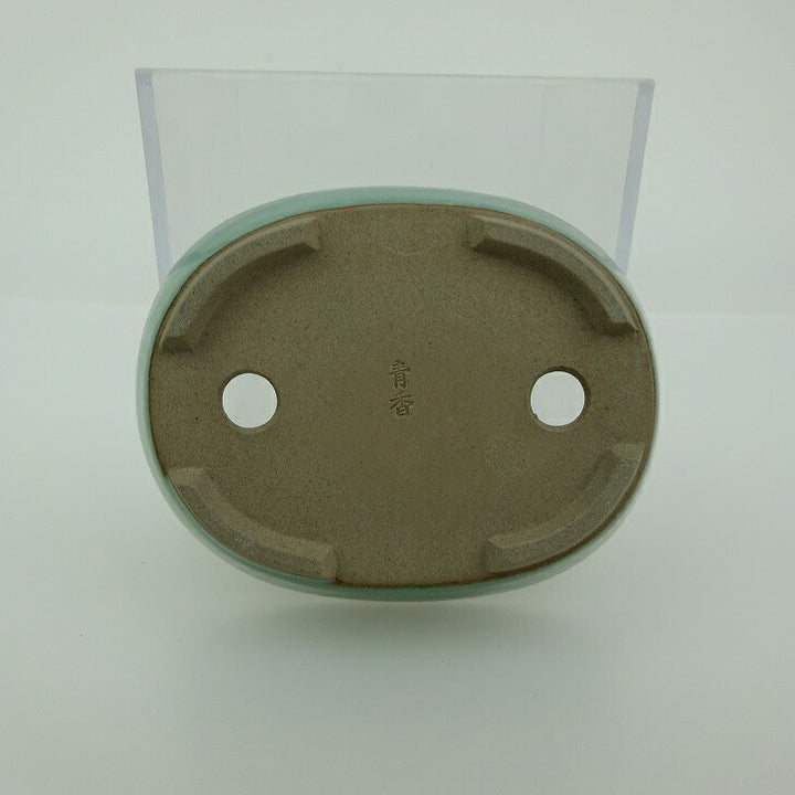 盆栽鉢 青香 小鉢 長辺 約 8.3cm 楕円 鉢 釉薬 現品 品名青香...