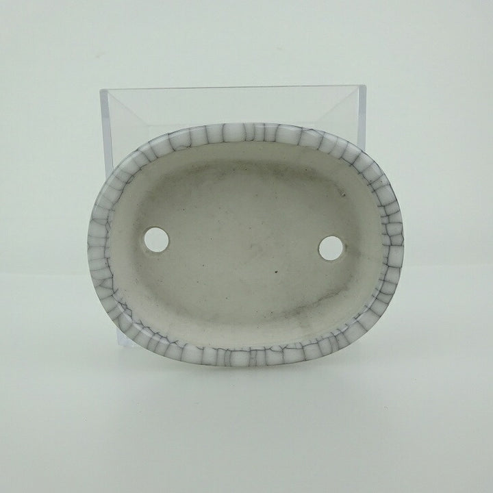 盆栽鉢 青香 小鉢 長辺 約8.4cm 楕円鉢 貫入 釉薬 e1198416159