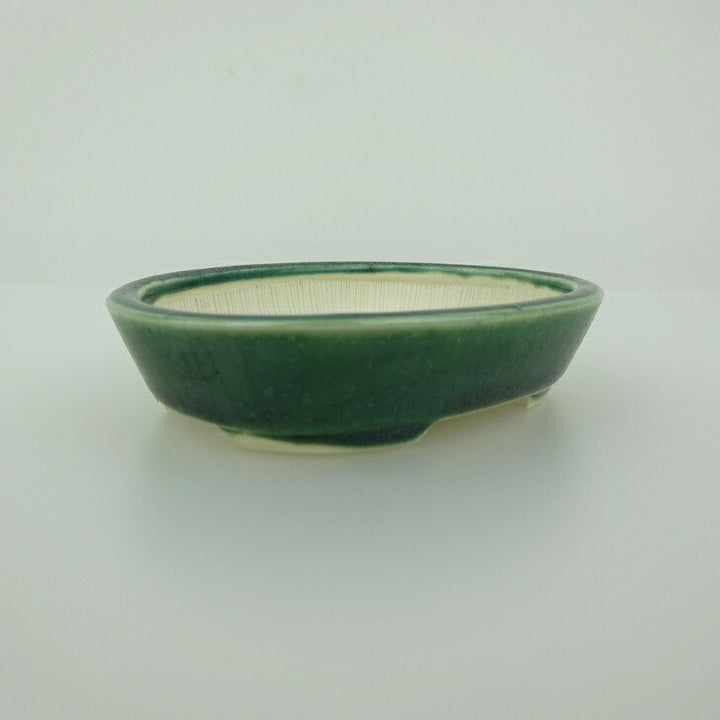 盆栽鉢 青香 小鉢 長辺 約8.5cm 楕円鉢 釉薬 k1198412512
