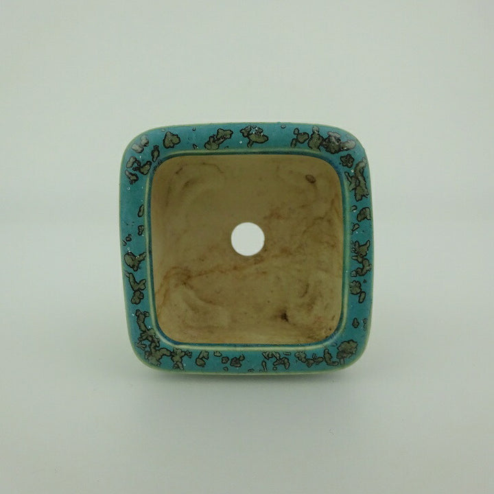盆栽鉢 青香 豆鉢 長辺 約4.6cm 正方鉢 釉薬 k1202245426