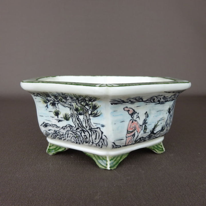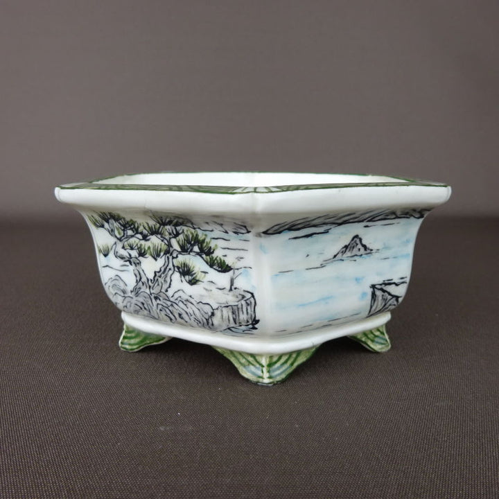 盆栽鉢 高山画 ゆうき祥石ボデー 五彩山水図 六角鉢