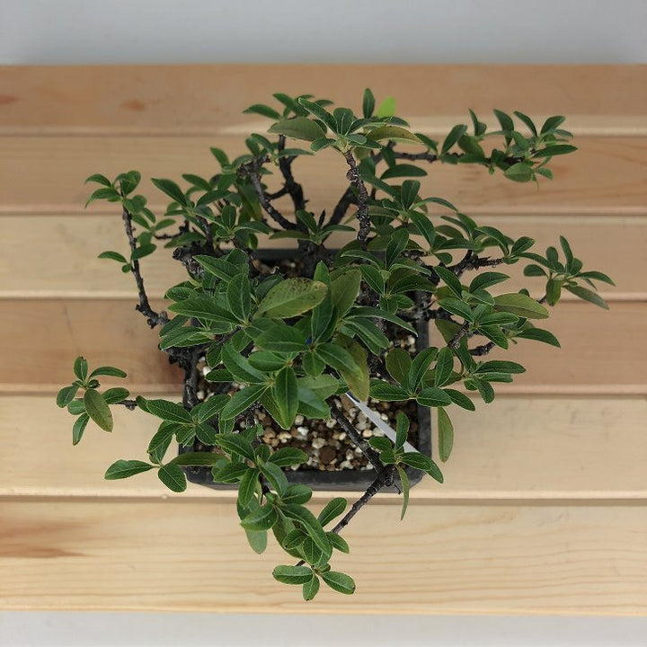 盆栽 ピラカンサ 樹高 約 16cm Pyracantha バラ科 常緑樹 観賞用 小品 現品 ■植物ですので撮影時期や季節によって剪定などの手入れにより写真から変化がございます。撮影日をご確認のうえ、ご注文ください。 【ピラカンサ盆栽】 開花時期は5月~6月頃、小さな5弁の白い花を咲かせます。果実はやや潰れたような球形でをしており、秋頃に色づきます。 ピラカンサにはいくつか種類があり、赤い実や黄色の実、濃い緑色の葉、白やピンクの斑が入るものも...