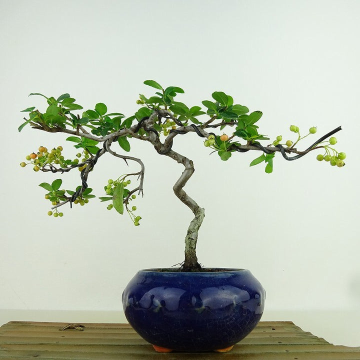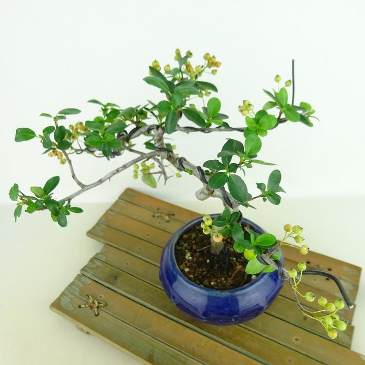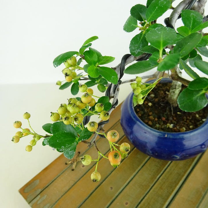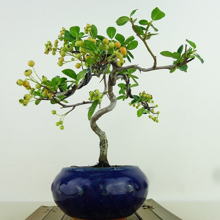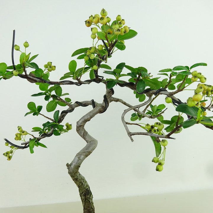 盆栽 ピラカンサ 樹高 約 17cm Pyracantha バラ科 常緑樹 観賞用 小品 現品 ■植物ですので撮影時期や季節によって剪定などの手入れにより写真から変化がございます。撮影日をご確認のうえ、ご注文ください。 【ピラカンサ盆栽】 開花時期は5月~6月頃、小さな5弁の白い花を咲かせます。果実はやや潰れたような球形でをしており、秋頃に色づきます。 ピラカンサにはいくつか種類があり、赤い実や黄色の実、濃い緑色の葉、白やピンクの斑が入るものも...