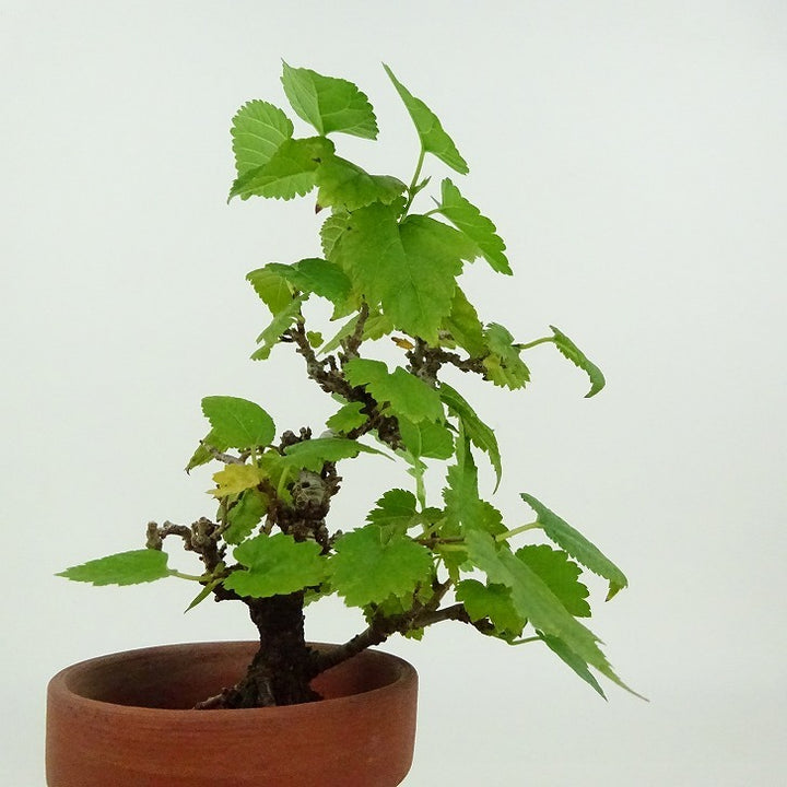 盆栽 桑 樹高 約 11cm くわ Morus australis クワ クワ科 落葉樹 観賞用 小品 現品 ■植物ですので撮影時期や季節によって剪定などの手入れにより写真から変化がございます。撮影日をご確認のうえ、ご注文ください。 【桑盆栽】 開花時期は春4~6月頃、雌雄異株または同株で本年枝下部の葉腋に穂状の雄花と球状の雌花を咲かせます。 実は集合果で白色から赤色と次第に変化をしながら黒紫色に熟していきます。...