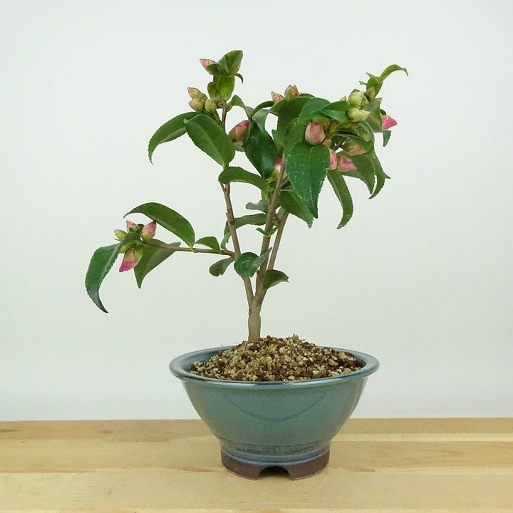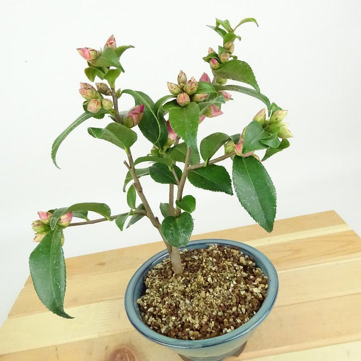 盆栽 椿 港の曙 樹高 約19cm つばき Camellia japonica ツバキ 淡桃 ピンク 一重 ツバキ科 常緑樹 観賞用 小品 c1198409916