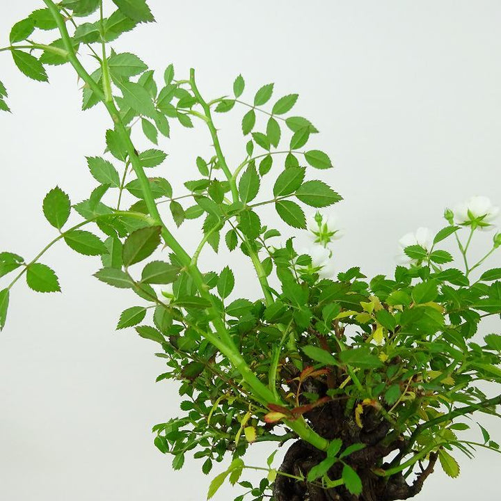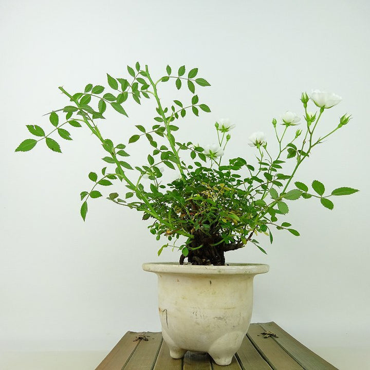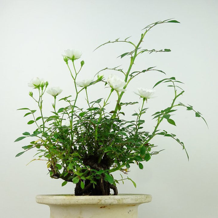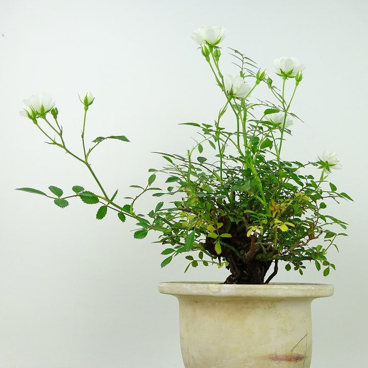 盆栽 薔薇 樹高 約 20cm ばら Rosa バラ 根上り 白 八重 バラ科 落葉樹 観賞用 小品 現品 ■植物ですので撮影時期や季節によって剪定などの手入れにより写真から変化がございます。撮影日をご確認のうえ、ご注文ください。 【薔薇盆栽】 多くの品種のあるバラですが、盆栽としては条件がよければ秋ごろまで花を楽しめます。剪定を繰り返して樹を太くしていくと盆栽として見応えのある樹になっていきますので人気のある樹種のひとつです。...
