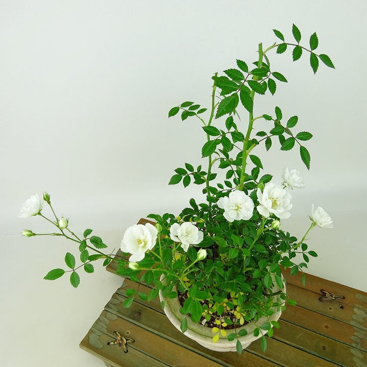 盆栽 薔薇 樹高 約20cm ばら Rosa バラ 白 八重 バラ科 落葉樹 観賞用 小品 j1198411683