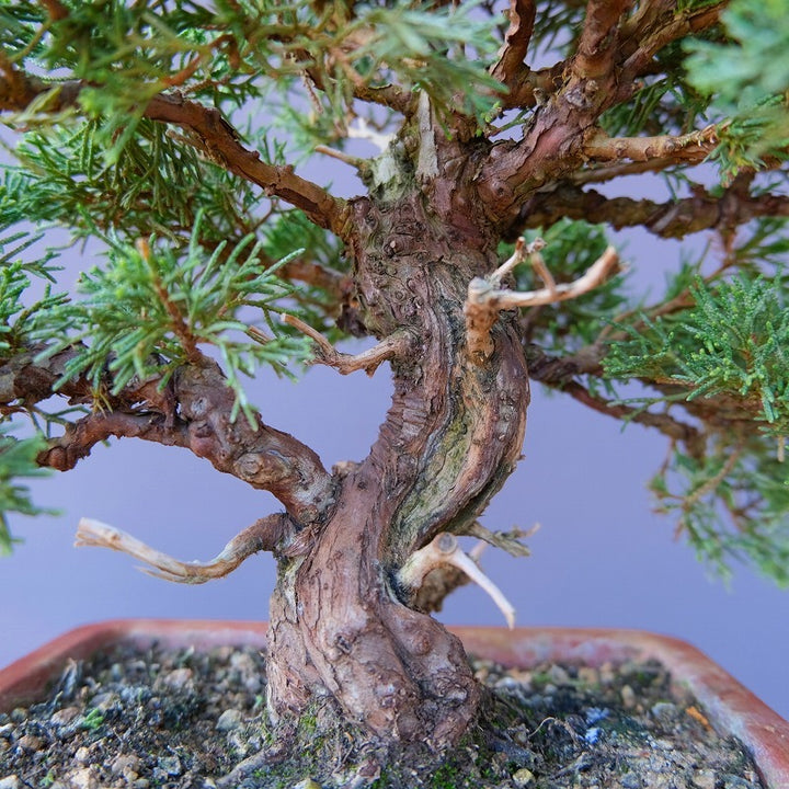 松盆裁生産日本一の高松から、盆栽職人が丹誠込めて作りあげた盆栽を、産地直送にてお届けします。 真柏【 模様木 】 説 明シャリを負った水吸いが上部にかけて素晴らしい幹模様を見せております。それに合わせた枝ぶりも良く、生と死のコントラストが美しい一樹です。 サイズ【  樹高 21cm 樹横幅 28cm 幹直径 4cm 】 アフターケア等 購入後の育て方についての質問はメールで承ります(ichijuen@me.pikara.ne.jp) 携帯 07...