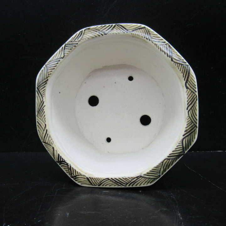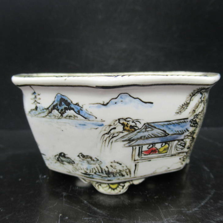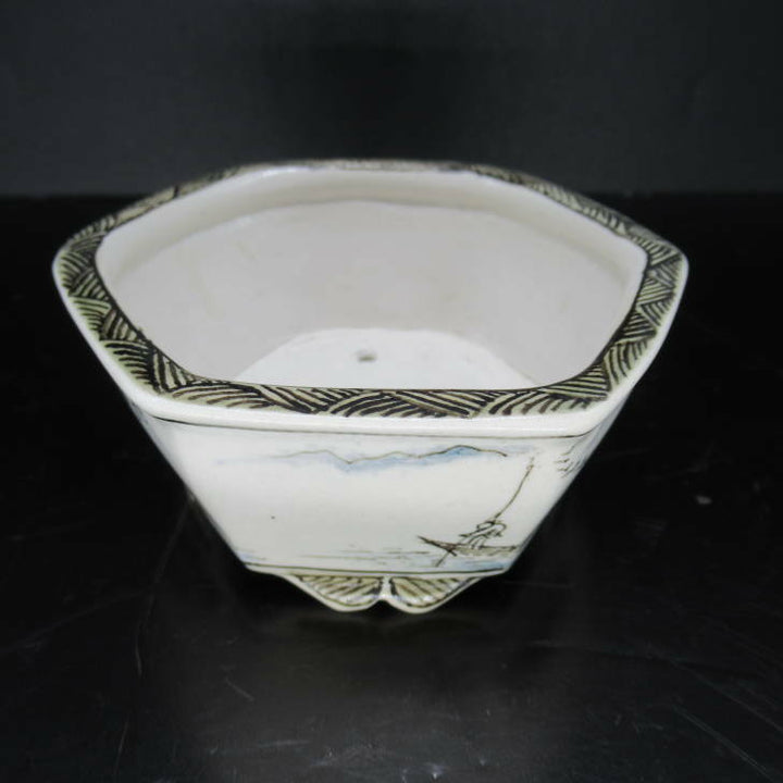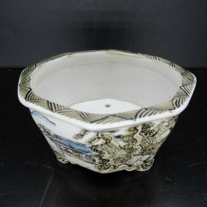 誠昭 色絵 山水人物図 八角 盆栽鉢 新品 p1198413441