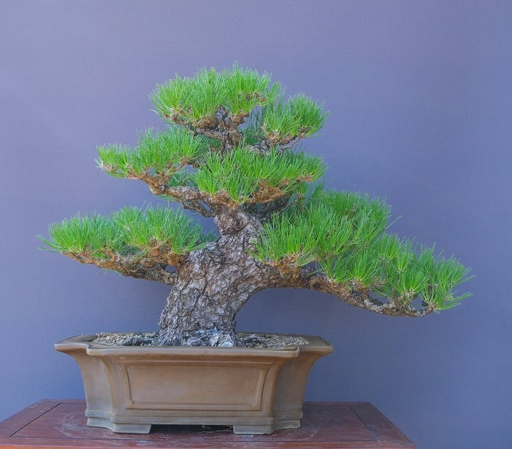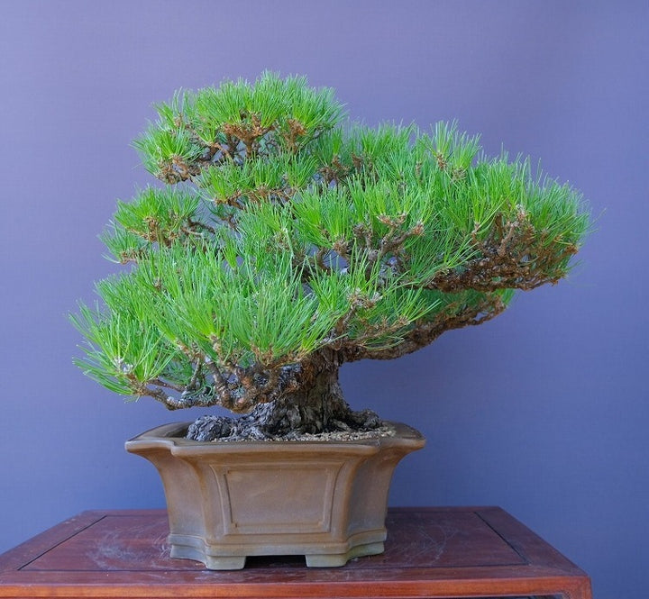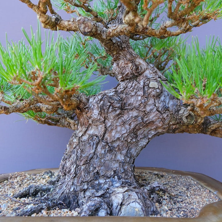 松盆裁生産日本一の高松から、盆栽職人が丹誠込めて作りあげた盆栽を、産地直送にてお届けします。 黒松【 模様木 】 説 明力強い立ち上がりから樹冠部に至る圧巻の自然模様と、枝元から枝先に至る繊細なほぐれは気品に満ち溢れ、観者の心に感銘を与える本格盆栽の逸品といえるでしょう。幹中間部に卵程の枝抜き跡があります。 サイズ【 樹高 55cm 樹横幅 88cm 幹直径 18cm 】 アフターケア等 購入後の育て方についての質問はメールで承ります(ichij...