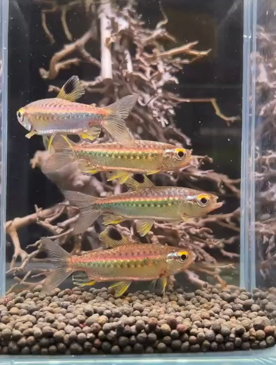 非洲紅眼綠平克燈魚,性格溫和,是適合混養同大小品種的魚。