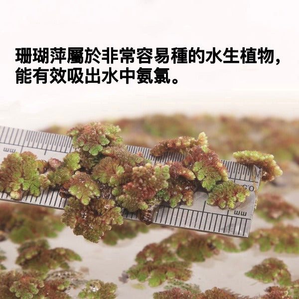 珊瑚萍植株呈三角形,幼時呈綠色,生長迅速,常在水面上長成一片。秋冬時節,它的葉內含有很多花青素,群體呈現一片紅色,所以也叫做滿江紅。