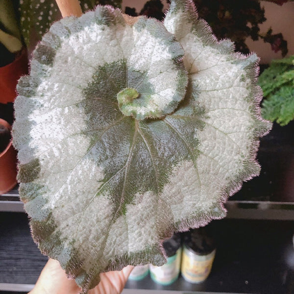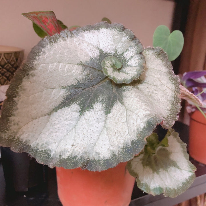 This stunning species hails from China and possesses velvety leaves and a hardy constitution. The undersides of the leaves are bright reddish-pink and visible when viewed directly from the front due to the growth habit of the plant. Somewhat versatile in it’s coloration, taking on red leaf venation in some conditions, and other times with more silvery venation.