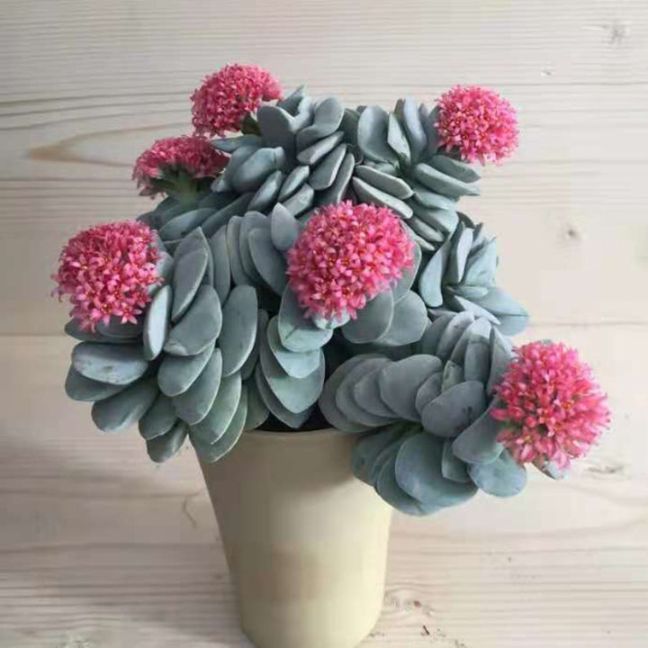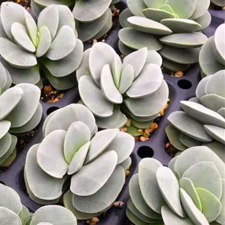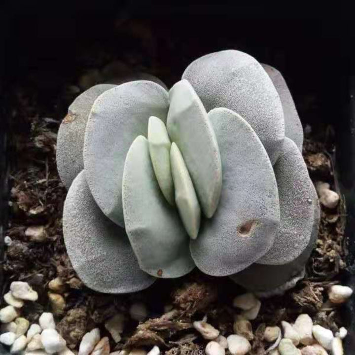 呂千惠,別名呂千繪,屬景天科青鎖龍屬,為南非雜交品種。其葉片寬厚緊密對生,表面帶有獨特的磨砂質感,形似石塊堆疊,觀賞性極高。植株矮小且易分枝,適合盆栽。作為「冬型種」,其生長期集中於秋、冬、春三季,夏季高溫時休眠,需嚴格控水以避免腐爛。
