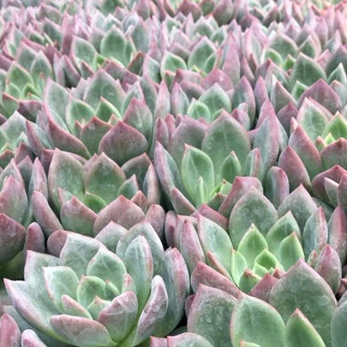 粉香檳是景天科擬石蓮屬的珍稀雜交品種,由經典品種「雪蓮」與「卡羅拉」優選培育而成。其葉表覆蓋厚實白粉,形成天然防護層,能抵禦強光並減少水分蒸散。植株生長緩慢,易群生形成老樁,隨季節變化呈現粉紫色調,深秋至初春狀態最為迷人。因繁殖成功率低且成株週期長,深受多肉收藏家青睞。
