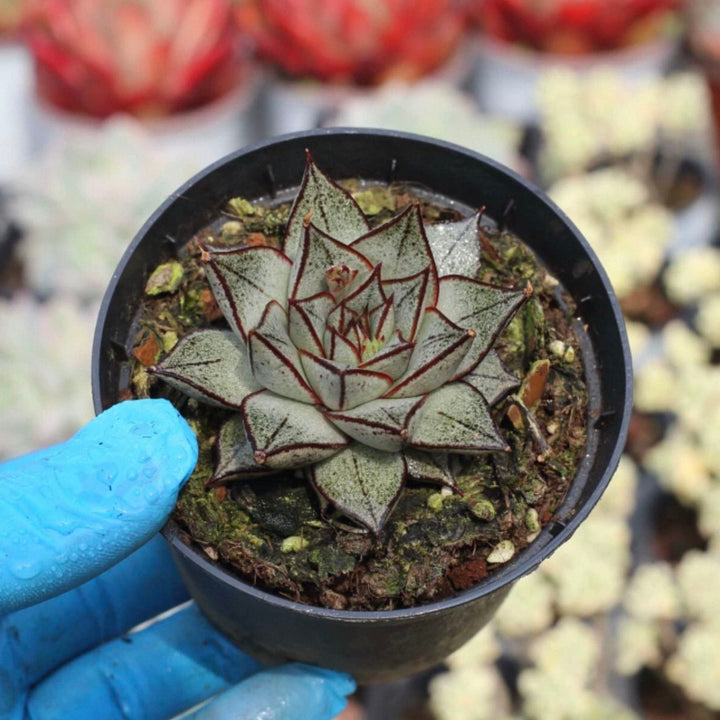 百合錦是景天科擬石蓮屬的多肉植物,是大和錦的白色變種,因其獨特的紅白斑紋和優雅形態,在多肉植物愛好者中頗具人氣.