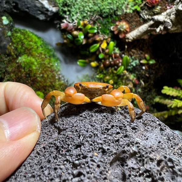 迷你光滑陸蟹的性格溫和,遇到危險常有裝死的行為。所以當你收到貨的時候他有可能是收到驚嚇正在裝死,而不是真正的死亡。