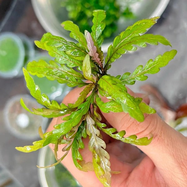 羽裂水蓑衣的水中葉會變得比較狹長,葉片較薄,顏色多變,以光照、水質及養分的不同,可呈現出鮮綠、黃綠或橙紅等不同色澤。