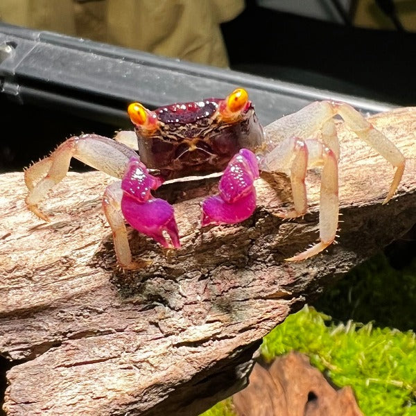 金睛玉面惡魔蟹 ( Geosesarma dennerle var. White Leg ) 是一種小型、色彩豐富的半陸生物種,原產於印尼爪哇島。它棲息在溪流、河流和池塘附近的森林地區。它大部分時間都在陸地上度過,但也經常淹沒在淡水中,包括蛻皮時。