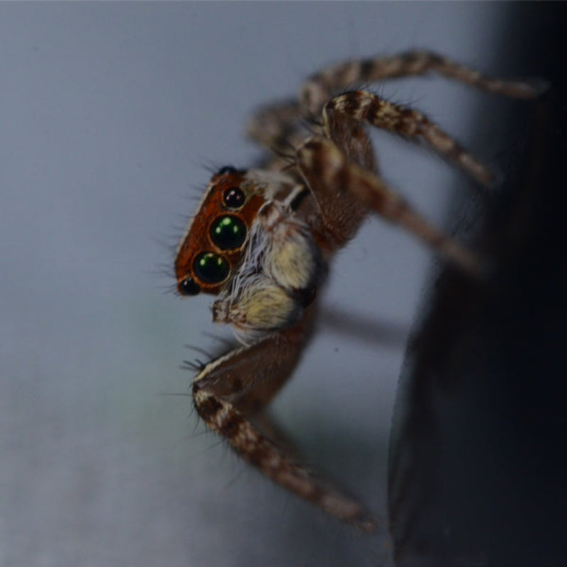 條紋蠅虎(學名:Plexippus paykulli)是一種常見的跳蛛,因其活潑好動、色彩鮮明而深受寵物愛好者喜愛。牠們體型小巧,行動敏捷,具有極佳的視覺能力,能夠精準捕捉獵物。條紋蠅虎的體色通常為黑褐色,並帶有明顯的條紋或斑點,雄性個體色彩更為鮮艷,尤其在求偶時會展現出耀眼的金屬光澤。